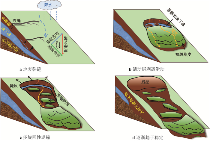 Under global climate warming scenarios, permafrost degradation has triggered retrogressive thaw slumps, posing threats to engineering infrastructure and ecological security in cold regions. However, many scholars lack sufficient understanding of the morphological characteristics and evolutionary processes of RTSs (retrogressive thaw slumps), and the applicability of simulation models has not been systematically summarized. In this study, RTSs from four perspectives: morphology, evolution, destabilization mechanisms, and simulation methods, based on field investigation and literature analysis. The main findings include: (1) The morphological characteristics of RTSs can be classified into 11 types, and their spatial distribution is associated with topographic features, permafrost conditions, and developmental stages. (2) The evolution of RTSs experiences four stages: surface cracking, active layer detachment, polycyclic recession, and gradual stabilization, mainly affected by ground ice and extreme climatic events. (3) The instability of RTSs is the result of the interaction among thermal-hydrological-mechanical fields. Under the influence of the stress field, moisture and heat transfer are affected, while the temperature and moisture fields determine the pore water pressure, which in turn influences the stress field and change slope stability. (4) The limit equilibrium method, numerical simulation, and uncertainty analysis are the main methods for simulating permafrost stability, each with its own advantages and limitations. This study enhances the understanding of the phenomena and processes of RTSs. It is of great significance for revealing the interaction mechanisms among permafrost, climate, and geomorphology, and provides support for the improvement of theoretical frameworks in cold-region geomorphology, permafrost mechanics, and related disciplines.
