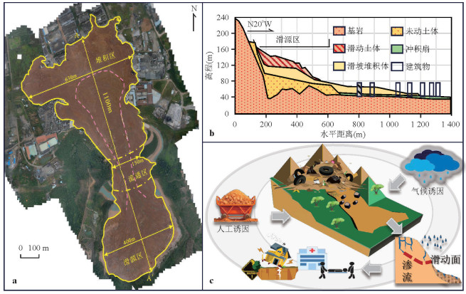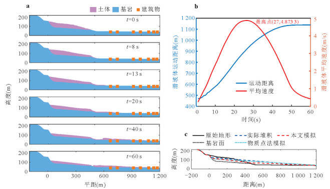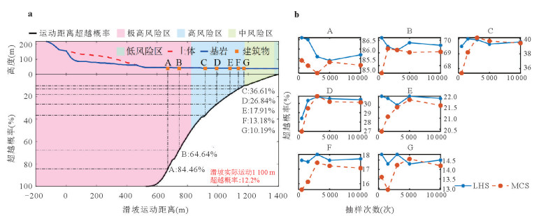 Urban solid waste landfill-induced high-steep slope instability often leads to secondary disasters such as extensive building destruction and casualties. To quantitatively evaluate the disaster risk of artificial landfill landslides, this study takes Shenzhen's "12•20" Guangming landslide as a case study, employing the depth-integrated method-based Massflow software to construct a dynamic numerical model that reproduces the entire evolution process of landslide initiation, high-speed movement, and deposition. By coupling with impact pressure calculation methods for landslide masses, the destructive impact effects on surrounding buildings were quantitatively evaluated. An uncertainty analysis framework was introduced, treating geotechnical parameters and sliding surface properties as random variables. A probabilistic analysis model was developed through Latin hypercube sampling, revealing the statistical characteristics of landslide travel distance under multifactorial influences and establishing a correlation model between landslide motion exceedance probability and building impact damage. Building vulnerability was further considered when conducting risk assessments for structures and nearby personnel. The study demonstrates that the depth-integrated method effectively captures the dynamic evolution of landslides, with simulated failure surface morphology, travel distance (1 139 m), and deposition pattern highly consistent with field monitoring data; impact pressure from landslide masses on buildings exhibits a rapid rise to peak values followed by gradual attenuation, with peak pressure decreasing significantly with distance from the landslide source; probabilistic analysis of landslide travel distance based on parameter uncertainty shows the actual deposition zone entirely falls within the 95% confidence interval, and building damage areas align with hazard zoning results. The proposed risk assessment framework integrating depth-integrated modeling and uncertainty analysis provides a novel methodology for quantitative evaluation of engineered landfill landslides, offering significant theoretical and practical implications for solid waste landfill safety management in the context of "zero-waste city" development.